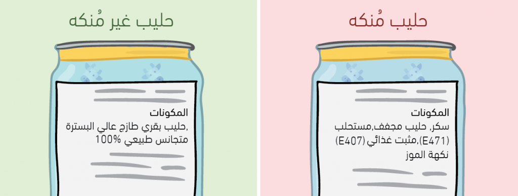 للتعرف على مكونات المنتج يجب ان تكون مألوفة لدينا مثل الطحين والبيض والخ… وليست غريبة أوغير مفهومة أواختصارات مثل MSG, sodium benzoate , والكثير من ال E numbers.